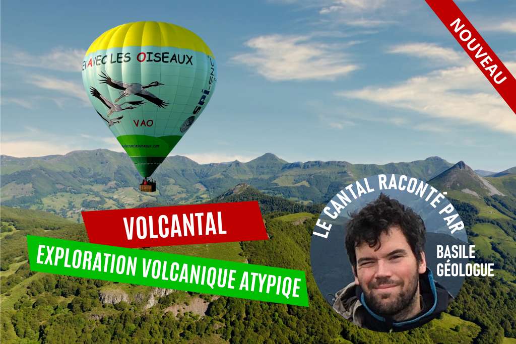VolCantal en Montgolfière : Le volcan cantalien est le plus ancien d’Auvergne et le plus grand volcan d’Europe, un stratovolcan de 70 km de diamètre. Son passé tumultueux a laissé son empreinte. Les hauts plateaux basaltiques, les cirques et vallées glaciaires, une agriculture adaptée au relief et au climat. Découvrez ces paysages magnifique lors d’un vol unique et dont l’histoire est racontée. Une conférence en plein ciel.